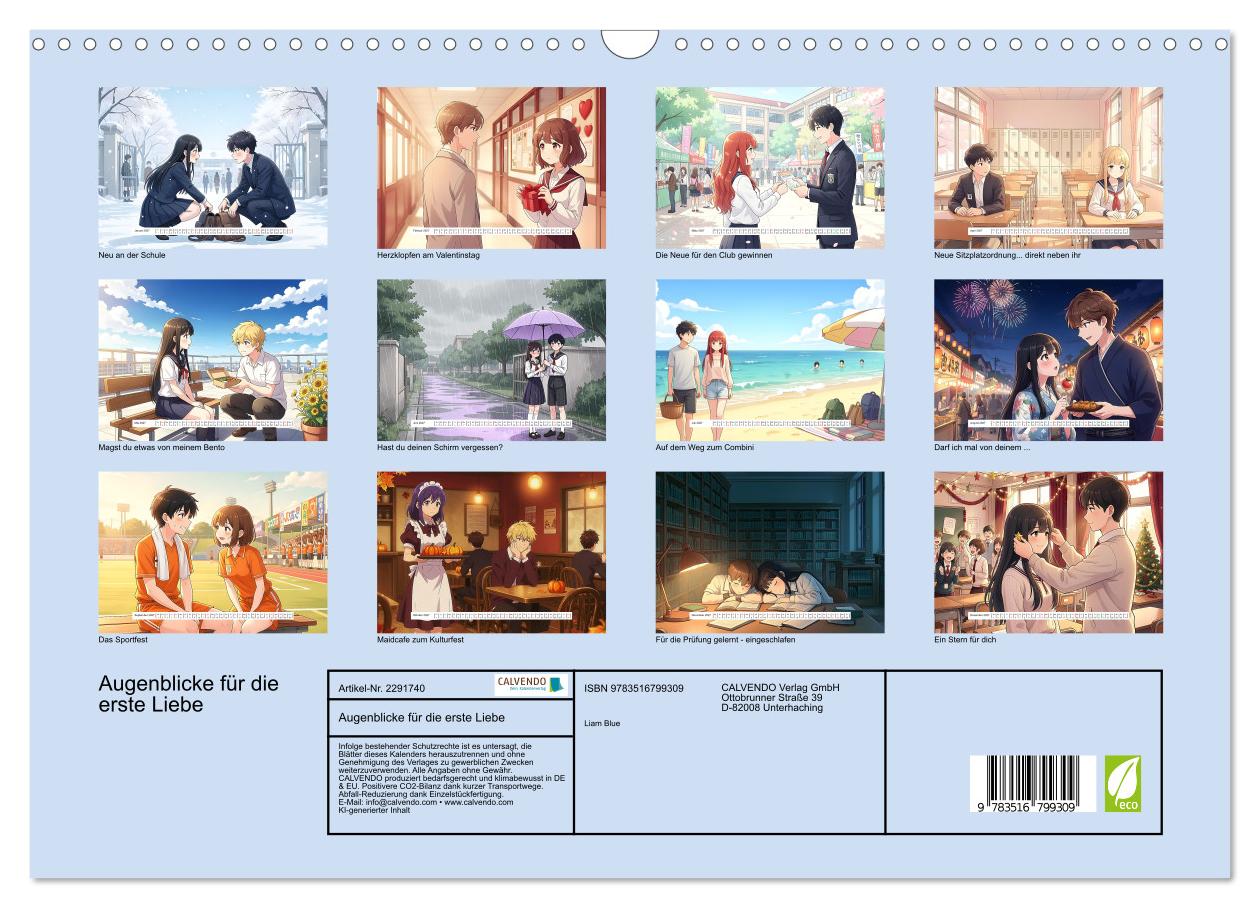Erster Blick. Zitternde Hände. Ein Schirm für zwei. Dieser KI-generierte Kalender erzählt von einem Schuljahr voller Schmetterlinge im Bauch — Monat für Monat ein einziger magischer Augenblick. Vom Zusammenstoß am Schultor im Januar über die Valentinsschokolade im Februar, den schüchternen Clubwerbetag im März und das stille Bento-Angebot auf dem Schuldach bis hin zur Frage aller Fragen im Dezember. Jedes Bild im authentischen Manga-Stil fängt genau jenen Herzschlag ein, den Anime-Fans sofort wiedererkennen. Romantisch, farbenprächtig, zum Verlieben — für alle, die die erste Liebe noch kennen oder gerade mittendrin sind.
