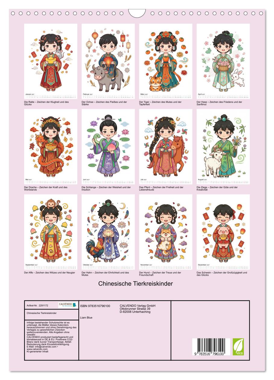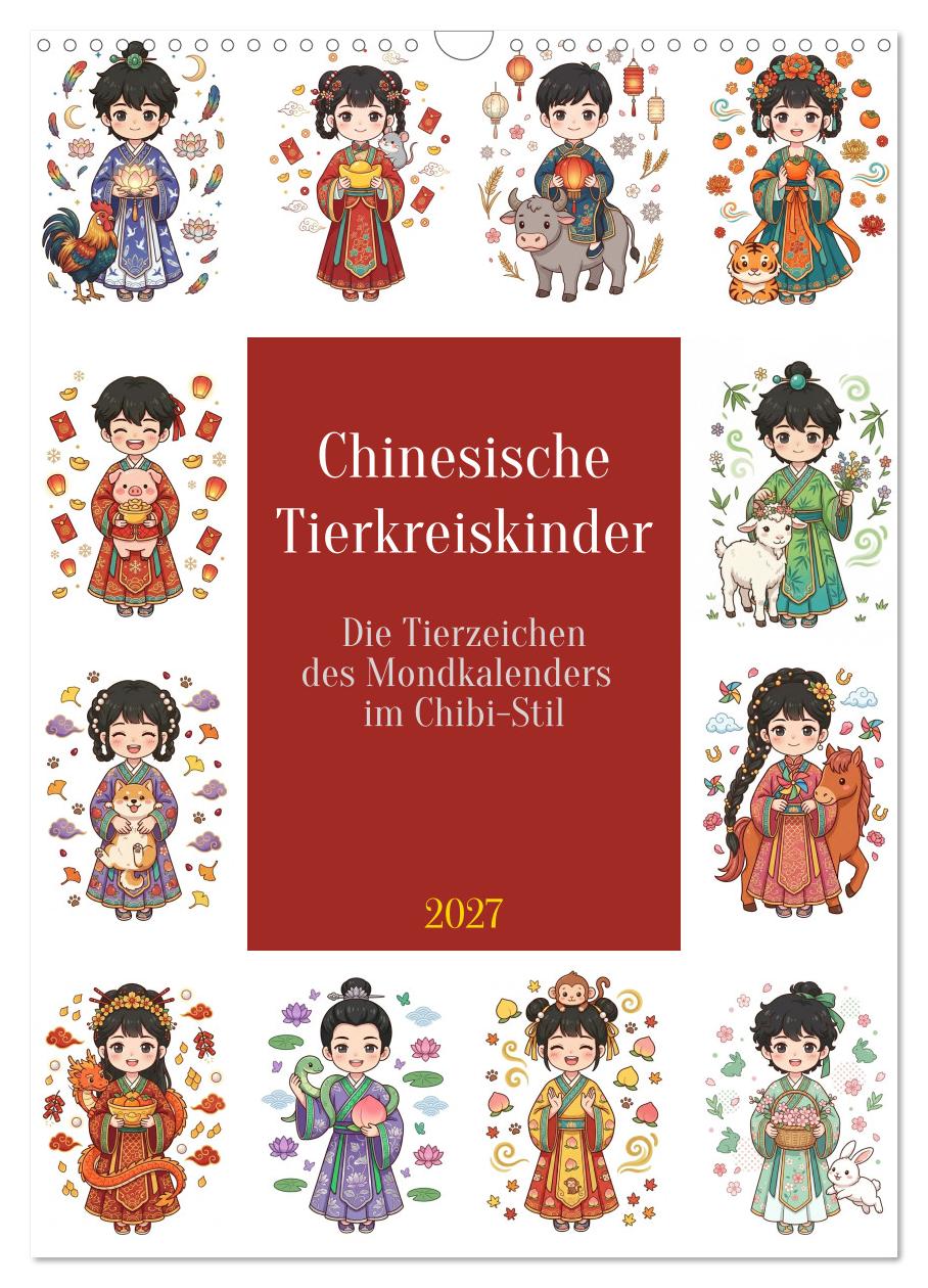 Ratte, Ochse, Tiger und Co. – die zwölf Tiere des chinesischen Tierkreises sind zurück, und diesmal bringen sie Freunde mit! Dieser KI-generierte Kinderkalender zeigt zwölf bezaubernde Chibi-Kinder in prächtigen Hanfu-Gewändern, jedes unzertrennlich mit seinem Tierzeichen-Begleiter. Jeden Monat lernen Kinder nicht nur ein neues Tier kennen, sondern auch die Werte, die es in der chinesischen Kultur verkörpert: die kluge Ratte steht für Glück, der treue Hund für Freundschaft, der mutige Tiger für Tapferkeit. Jeder Monat erstrahlt in seiner eigenen Farbwelt – von leuchtendem Rot über Jadegrün bis zu zartem Violett – umrahmt von typischen chinesischen Symbolen und Mustern. Angelehnt an die farbenfrohe Welt chinesischer Festkultur verbindet dieser Wandschmuck Niedlichkeit mit echtem Lerneffekt.