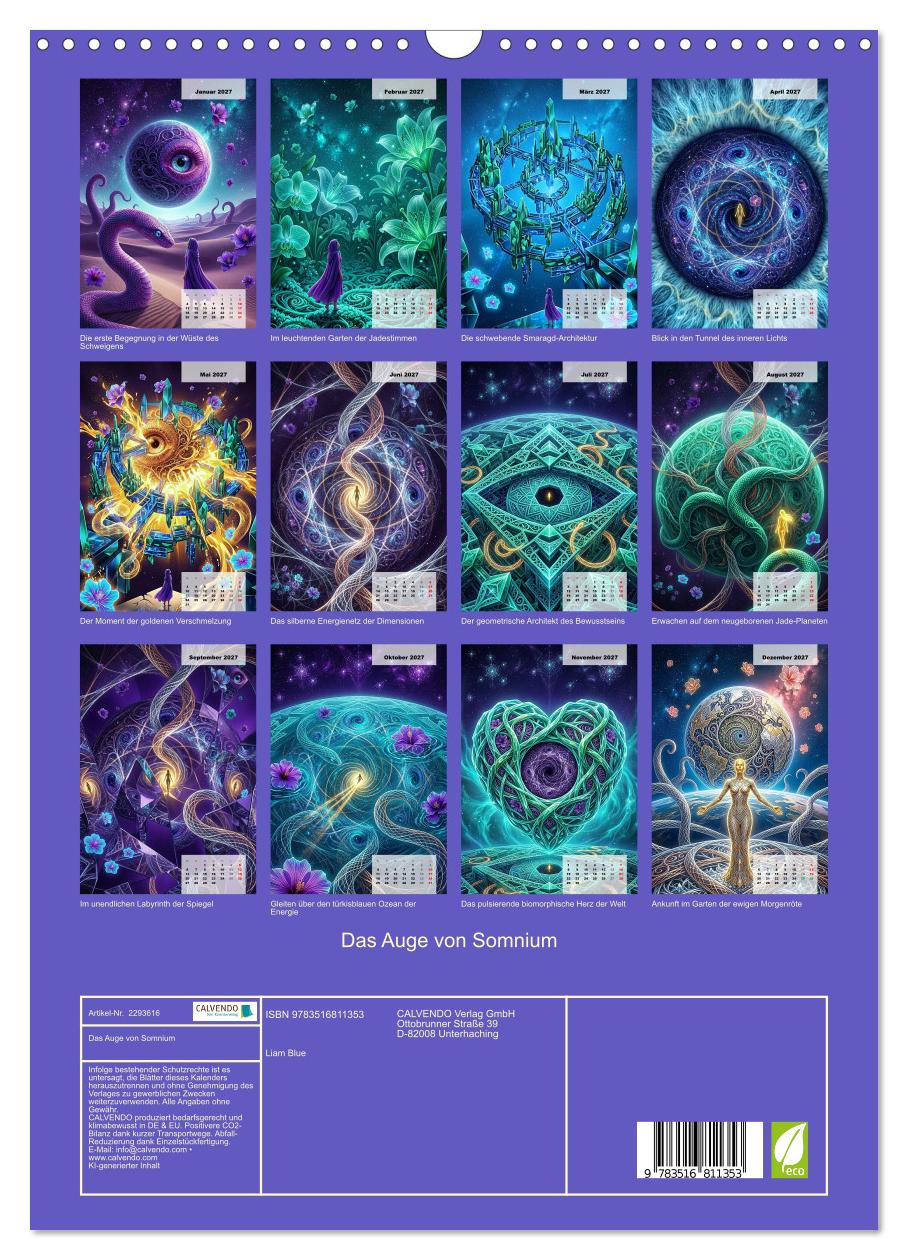 Tauchen Sie ein in eine Welt, in der Träume Gestalt annehmen und der Kosmos eine eigene Seele besitzt. Dieser Kalender entführt Sie auf eine zwölfteilige Odyssee durch purpurne Wüsten, schwebende Kristallstädte und goldene Dimensionen. Jedes Motiv ist eine meisterhafte Verschmelzung von organischer Natur und geometrischer Abstraktion, die den Betrachter Monat für Monat tiefer in das Geheimnis des ewigen Bewusstseins zieht. Die kunstvollen Darstellungen sind vollständig KI-generiert und in ihrer Detailtiefe und Farbgewalt einzigartig. Die Szenarien sind lose angelehnt an klassische Motive des Surrealismus und des Science-Fiction, interpretieren diese jedoch auf eine völlig neue, moderne Weise. Erleben Sie eine visuelle und surreale Saga.