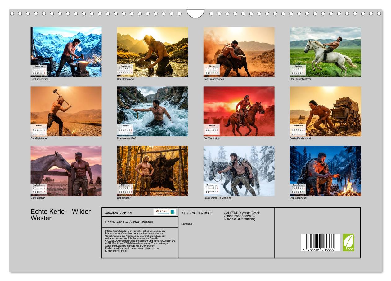 Der Westen war keine Kulisse – er war eine Prüfung. Wer hier lebte, arbeitete mit dem ganzen Körper: am Amboss, im reißenden Fluss, beim Brechen wilder Mustangs, unter der erbarmungslosen Mittagssonne auf glühenden Schienen. Diese zwölf KI-generierten Bilder, angelehnt an die raue Welt des amerikanischen Westens, zeigen Männer in ihrer kraftvollsten Form – keiner wie der andere, jeder in seinem Moment. Schweiß auf der Haut, Staub in der Luft, Feuer in den Augen. Ein Kalender für Frauen, die echte Kerle zu schätzen wissen.