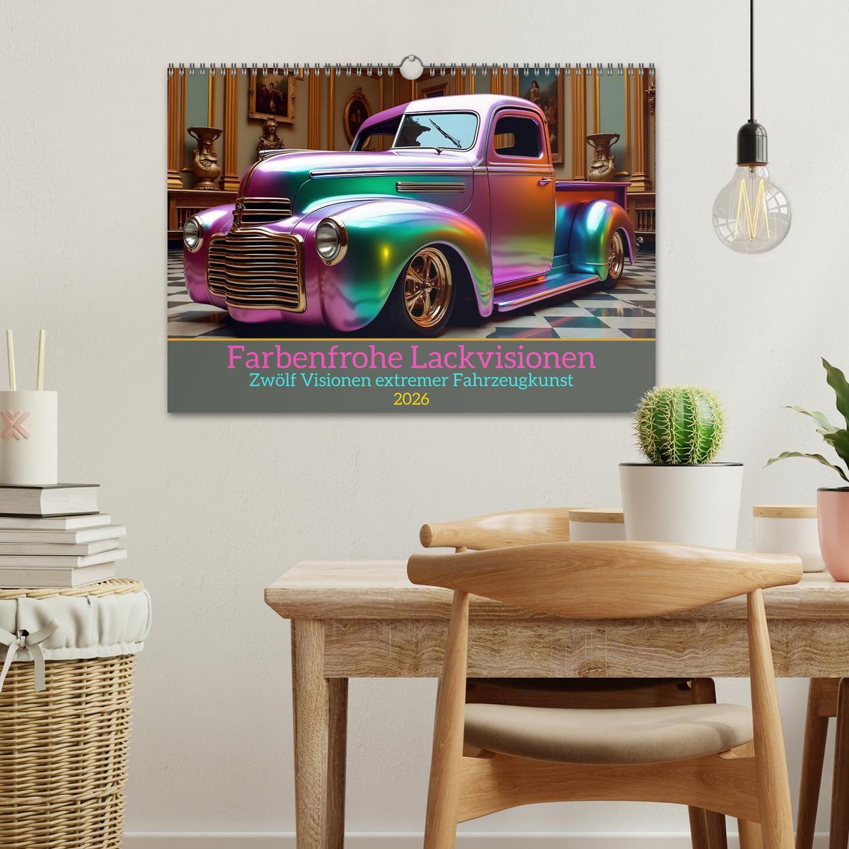 Spektakuläre Kunst auf vier Rädern: In „Farbenfrohe Lackvisionen“ verschmelzen radikale Umbauten mit außergewöhnlichen Lackierungen zu echten Traumwagen. Jeder Monat präsentiert ein einzigartiges, KI-generiertes Showcar – geslammt, gechoppt und mit den wildesten Farbverläufen veredelt. Diese Fahrzeuge trotzen jeder Norm und glänzen als Vision extremer Fahrzeugkunst in luxuriösen Showräumen. Perfekt für alle, die kreatives Automobildesign lieben und sich von individueller Technik und Lackkunst inspirieren lassen möchten. Hier wird jede Seite zum Blickfang für Individualisten und leidenschaftliche Enthusiasten der Custom-Szene.