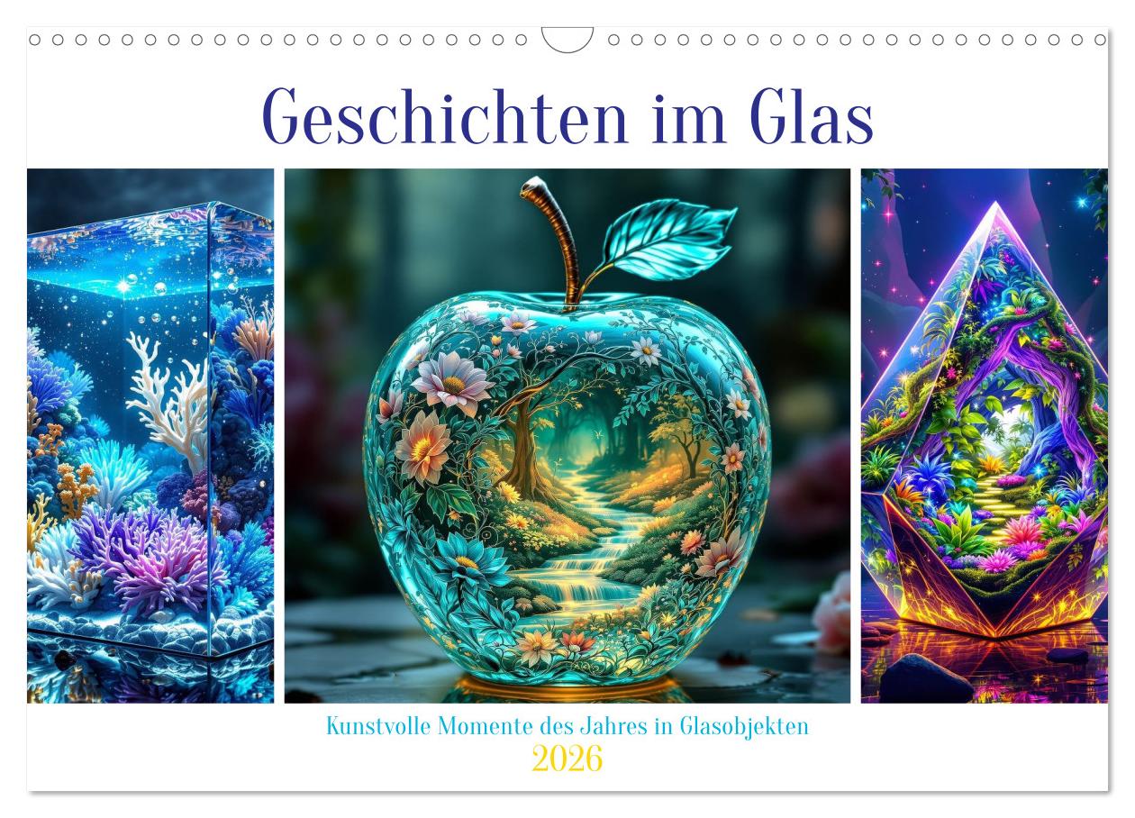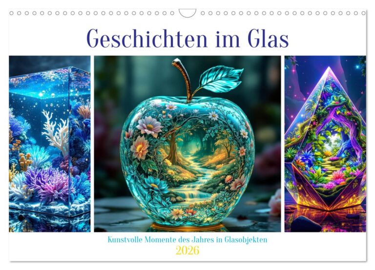Tauchen Sie ein in eine Welt voller Fantasie und künstlerischer Vielfalt: „Geschichten im Glas“ präsentiert zwölf einzigartige Glasobjekte, die kunstvoll und detailverliebt verschiedene Momente, Feste und Stimmungen des Jahres widerspiegeln. Jede Monatsseite bietet ein liebevoll inszeniertes Motiv – von sprühendem Frühling über romantische Sommerträume bis hin zu magischen Winterlandschaften. Die kunstvollen Bildwelten entstanden mithilfe innovativer KI-Technik und verbinden traditionelle Märchen, florale Poesie und edles Design in faszinierenden Kompositionen. Lassen Sie sich verzaubern und entdecken Sie die Schönheit der Jahreszeiten in außergewöhnlichen Glasgefäßen.