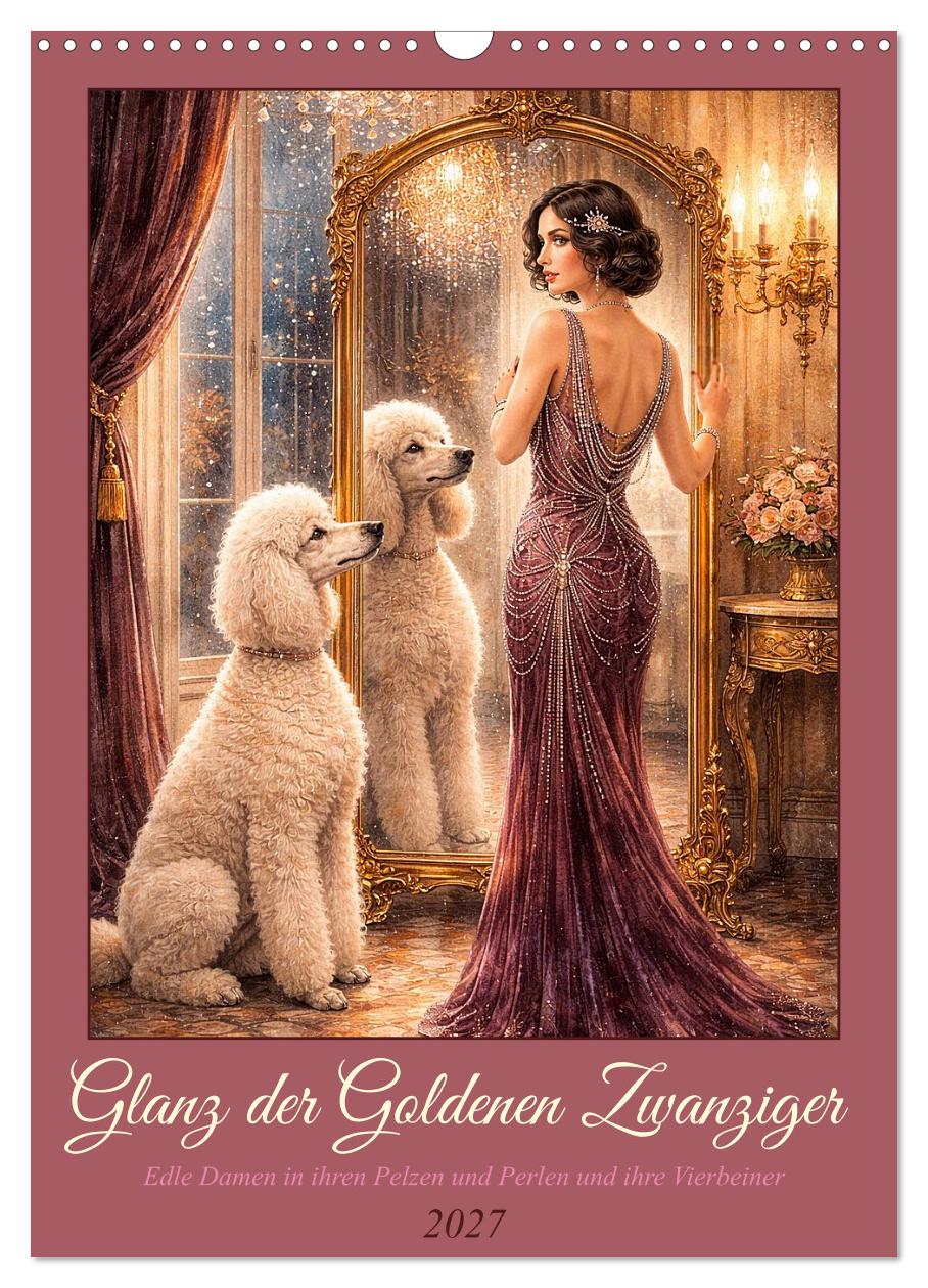 Pelzstola, Perlenkette, Fransenkleid – und an der Seite ein edler Hund. Dieser KI-generierte Wandkalender taucht ein in die glamouröse Welt der Goldenen Zwanziger: Zwölf elegante Damen in prachtvollen Art-Déco-Gewändern, jede begleitet von einer anderen Hunderasse, die in jener Epoche als Modebegleiter galt. Ein Borzoi auf verschneiter Villenterrasse, ein Afghane im Schein des Kamins, ein Saluki zwischen ersten Magnolienblüten, ein Chow-Chow vor toskanischer Villa, ein Dackel am Weihnachtskamin. Angelehnt an die Ästhetik der Goldenen Zwanziger zeigen die romantischen Aquarell-Illustrationen mit Glitzerstaub und warmem Lichtspiel eine Welt voller Eleganz, Nostalgie und Wärme. Für alle, die Vintage-Mode, edle Hunde und romantische Malerei lieben.