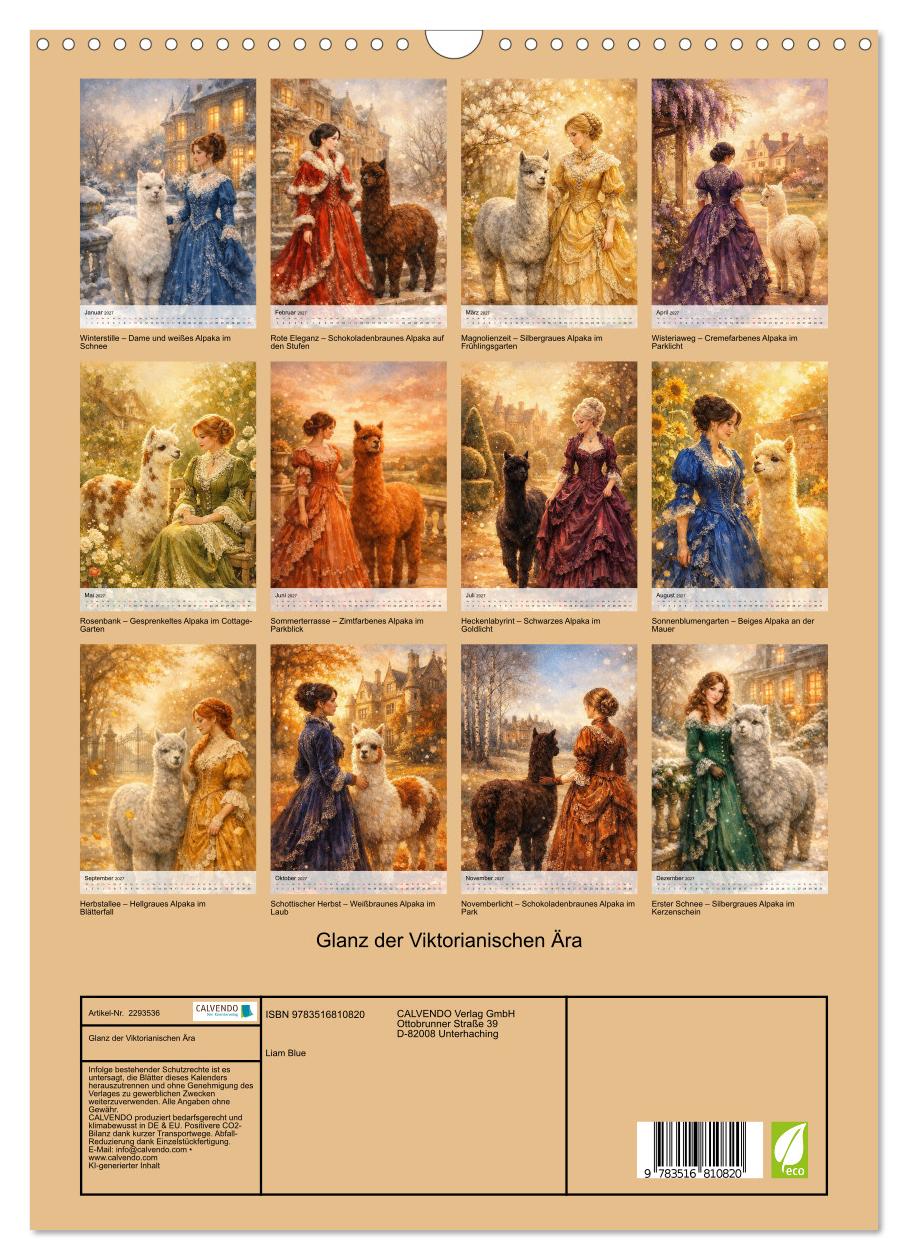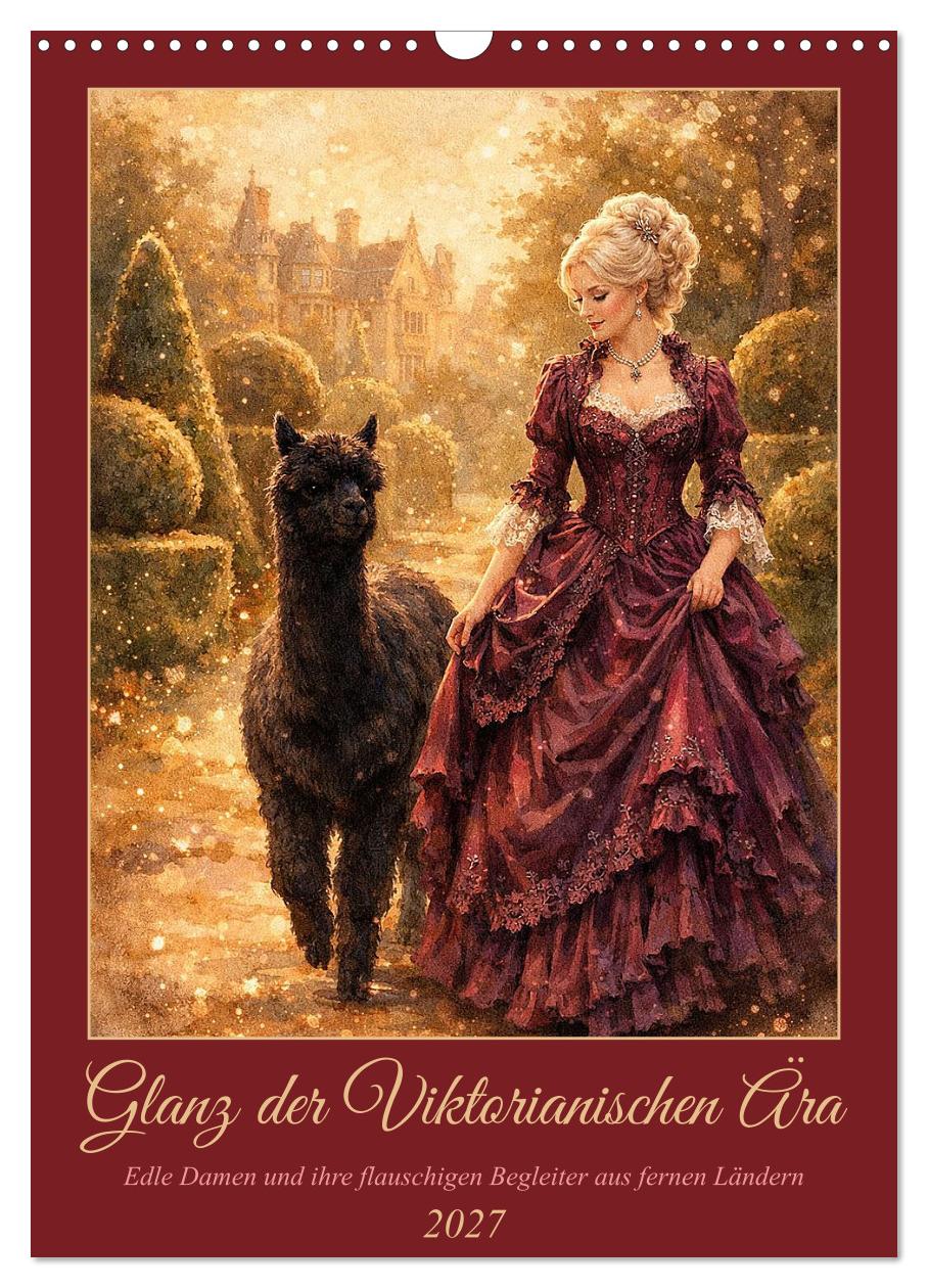 Das Britische Empire öffnete Türen in alle Welt – und manchmal fand dabei das Ungewöhnlichste seinen Weg in die feinen Gärten englischer Landhäuser. Dieser Kalender entführt in eine Welt aus samtenen Kleidern, nebligen Parkanlagen und unvergesslichen Begegnungen: Edle Damen der Viktorianischen Ära, angelehnt an das England des 19. Jahrhunderts, in Begleitung der wohl charmantesten Tiere Südamerikas. KI-generierte Aquarellillustrationen verbinden britische Eleganz mit der unwiderstehlichen Flauschigkeit des Alpakas – ein Kalender für alle, die das Außergewöhnliche lieben.