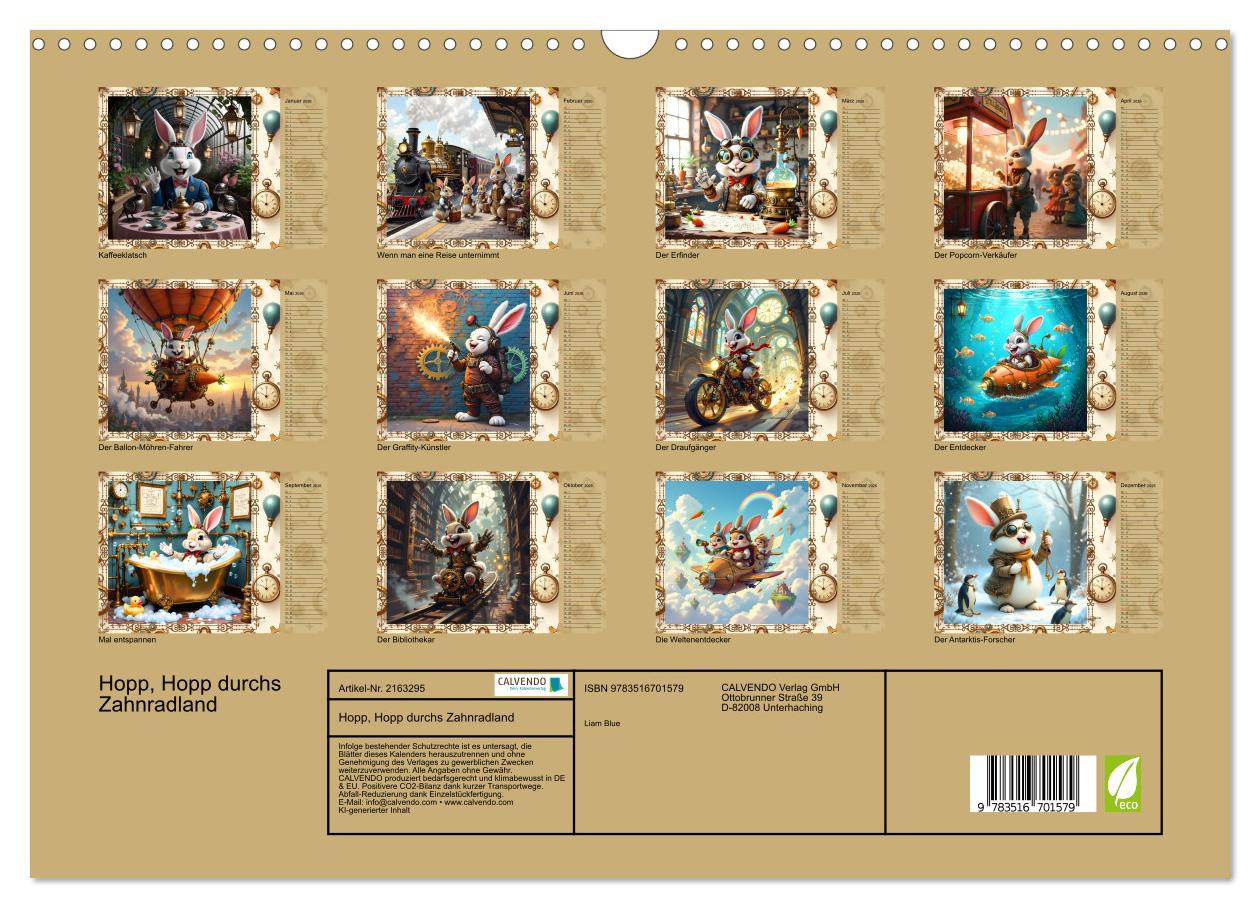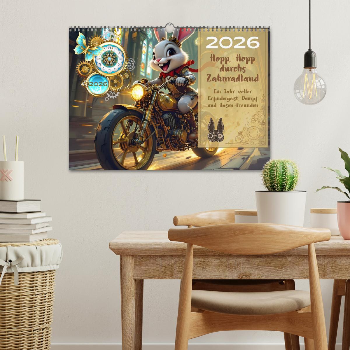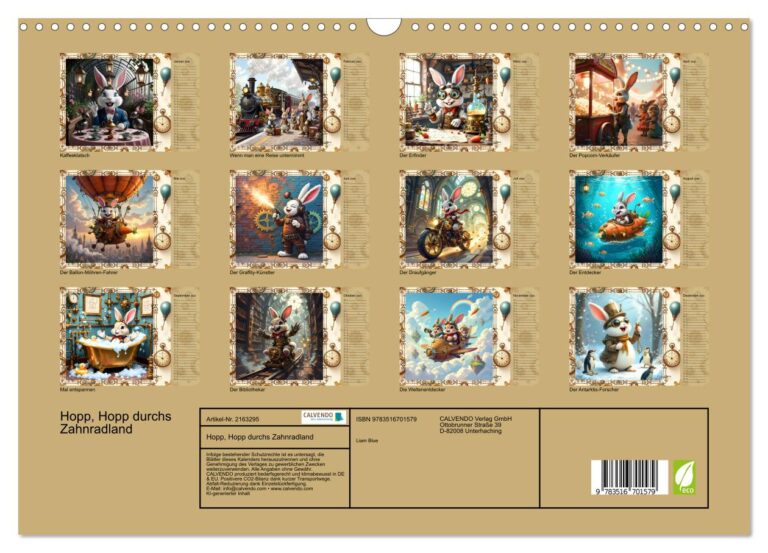 Willkommen in „Hopp, Hopp durchs Zahnradland“ – dem Kinderkalender voller Erfindergeist, Abenteuer und lustiger Hasen-Freunde! Begleite den witzigen Steampunk-Hasen durch ein ganzes Jahr voller dampfender Maschinen, knallbunter Luftballons, verrückter Erfindungen und herzerwärmender Freundschaft. Die liebevoll gestalteten Motive verbinden Fantasie, Technik und jede Menge Spaß – ein echtes Highlight für Kinderzimmer und kleine Tüftler. Mit viel Witz und Charme lädt der KI generierte Kalender zum Staunen, Lachen und Entdecken ein.