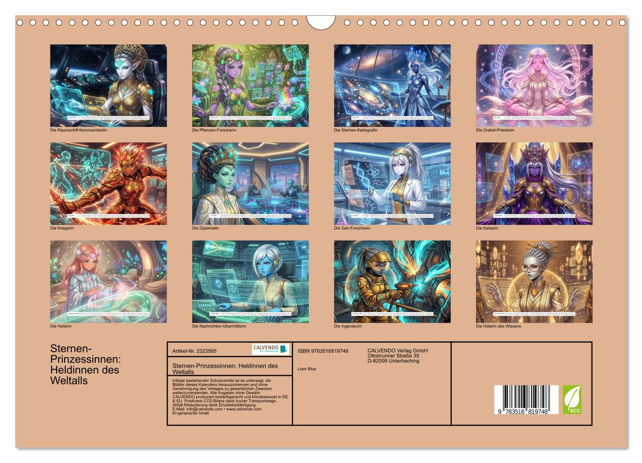 Dieser zauberhafte Kalender zeigt Mädchen, dass Prinzessinnen nicht nur schön sind – sie sind Wissenschaftlerinnen, Heilerinnen, Forscherinnen und Beschützerinnen! Jeden Monat lernen junge Leserinnen eine neue außerirdische Prinzessin kennen, die auf ihrem Planeten eine wichtige Aufgabe erfüllt: Sie untersucht Pflanzen im Weltraumgarten, navigiert Raumschiffe durch Sternensysteme, heilt Kranke mit magischer Energie oder repariert wichtige Maschinen. Die leuchtenden, detailreichen Bilder wurden mit modernster KI-Technologie generiert und zeigen starke, kluge Heldinnen in goldenen Rüstungen und fantastischen Welten voller Sterne und Wunder. Perfekt für Mädchen, die davon träumen, selbst einmal Wissenschaftlerin, Forscherin oder Entdeckerin zu werden – im Weltraum ist alles möglich!