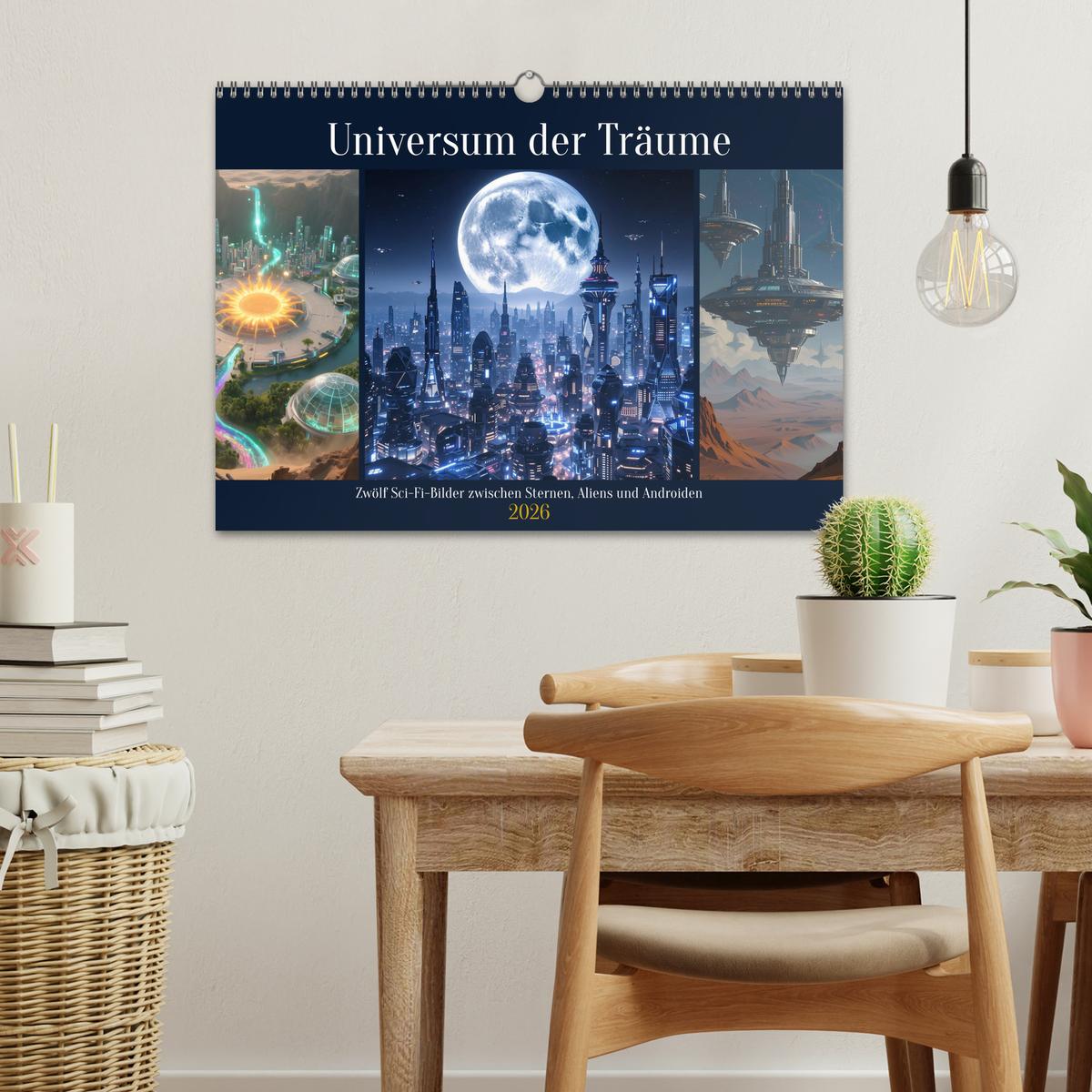 Erlebe mit „Universum der Träume – Zwölf Sci-Fi-Bilder zwischen Sternen, Aliens und Androiden“ eine Reise in fantastische Welten! Modernste KI erschafft atemberaubende Szenen: faszinierende Alien-Landschaften, schwebende Ufos, geheimnisvolle Städte, Androiden und Raumfahrer. Jeder Monat offenbart neue Abenteuer und beeindruckende Visionen, wie sie nur durch künstliche Intelligenz möglich sind. Für Fans von Science-Fiction, Zukunft und inspirierender Ästhetik.