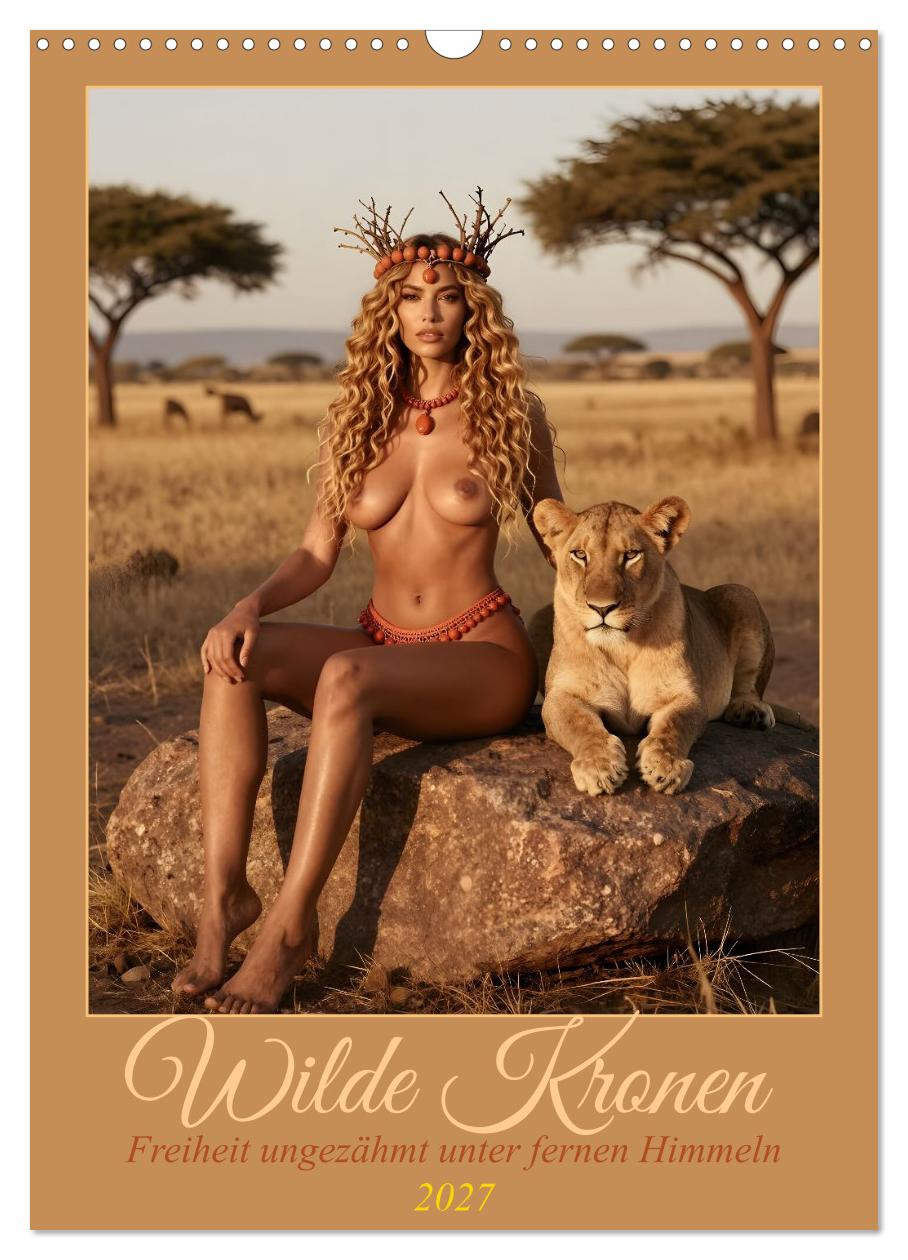 Was braucht eine Frau, um sich wirklich frei zu fühlen? In diesem Wandschmuck ist die Antwort einfach: nur eine Krone aus dem, was die Natur hergibt. Zwölf atemberaubende Frauen in den ungezähmtesten Landschaften der Erde – jede in Begleitung eines Tieres, das sich normalerweise niemanden nähern lässt. Ein Gepard in der afrikanischen Savanne. Ein Schneeleopard am Himalaya-Felsgrat. Ein schwarzer Panther im Mondlicht des Regenwaldes. Jedes Bild erzählt von einer stillen Verbindung zwischen Mensch und Wildnis, die weit jenseits von Worten liegt. Die Motive wurden aufwendig KI-generiert und sind angelehnt an die Idee ursprünglicher weiblicher Stärke. Für alle, die das Wilde in sich kennen.